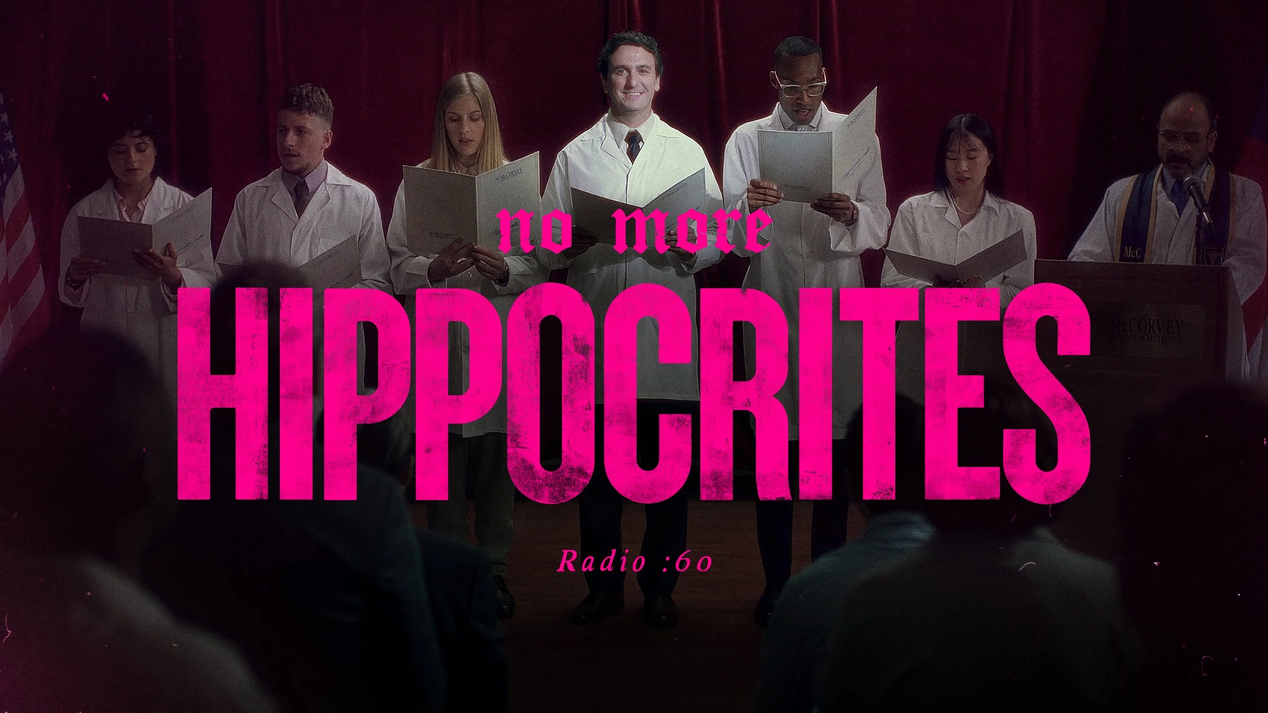 Aired on major radio platforms nationwide, the Hippocrites radio spot presents a fresh take on the issue by envisioning what a modern recital of the Hippocratic Oath would sound like under recent draconian abortion restrictions. The dramatic result highlights the need for change.